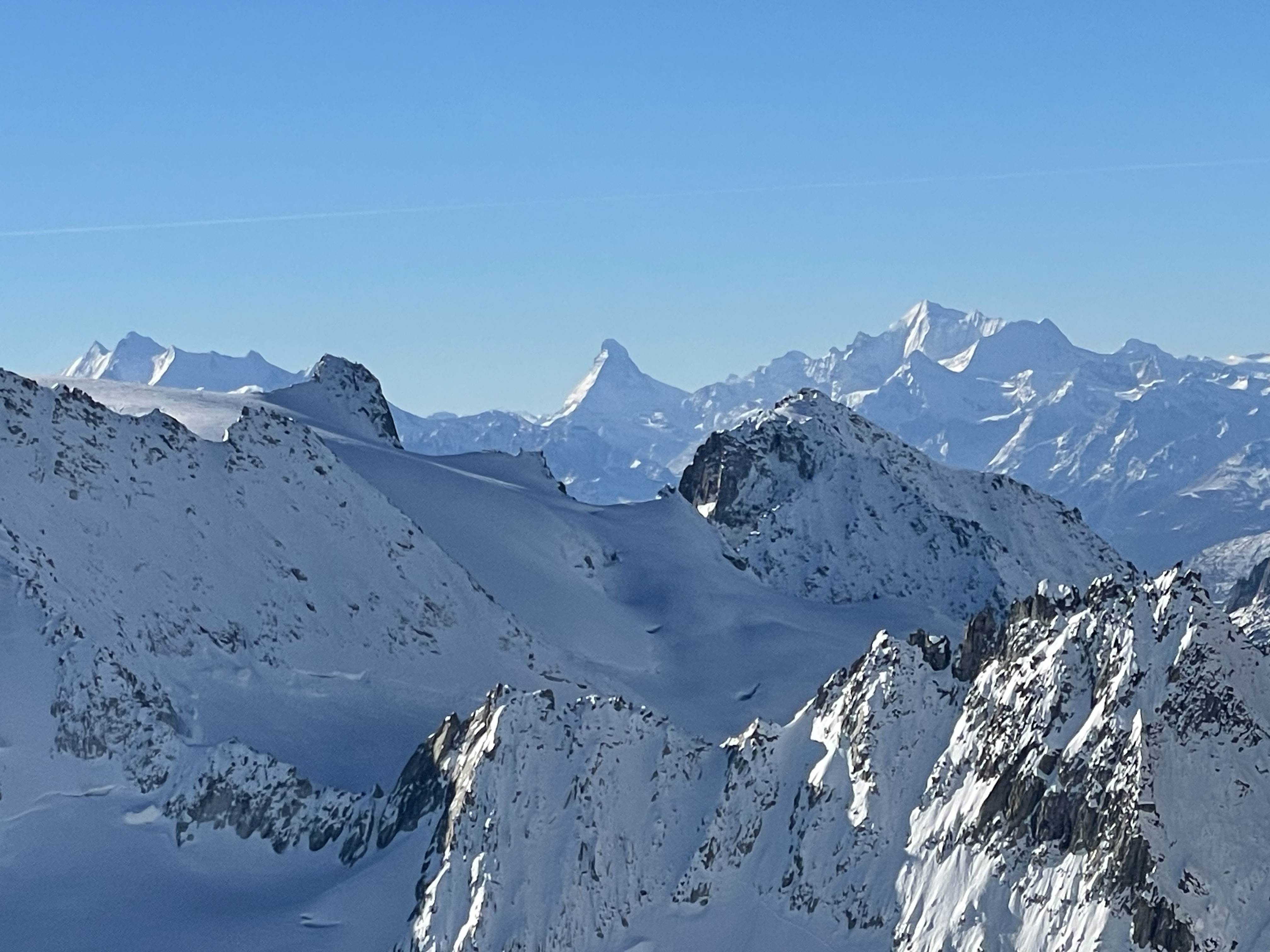 Vorbei an Visp erreichen wir die eindrucksvolle Bergwelt rund um den Dom und das Unterrothorn, wo eine Gletscherlandung auf rund 3’100 m ü. M. vorgesehen ist, ein unvergessliches Erlebnis in hochalpiner Umgebung.